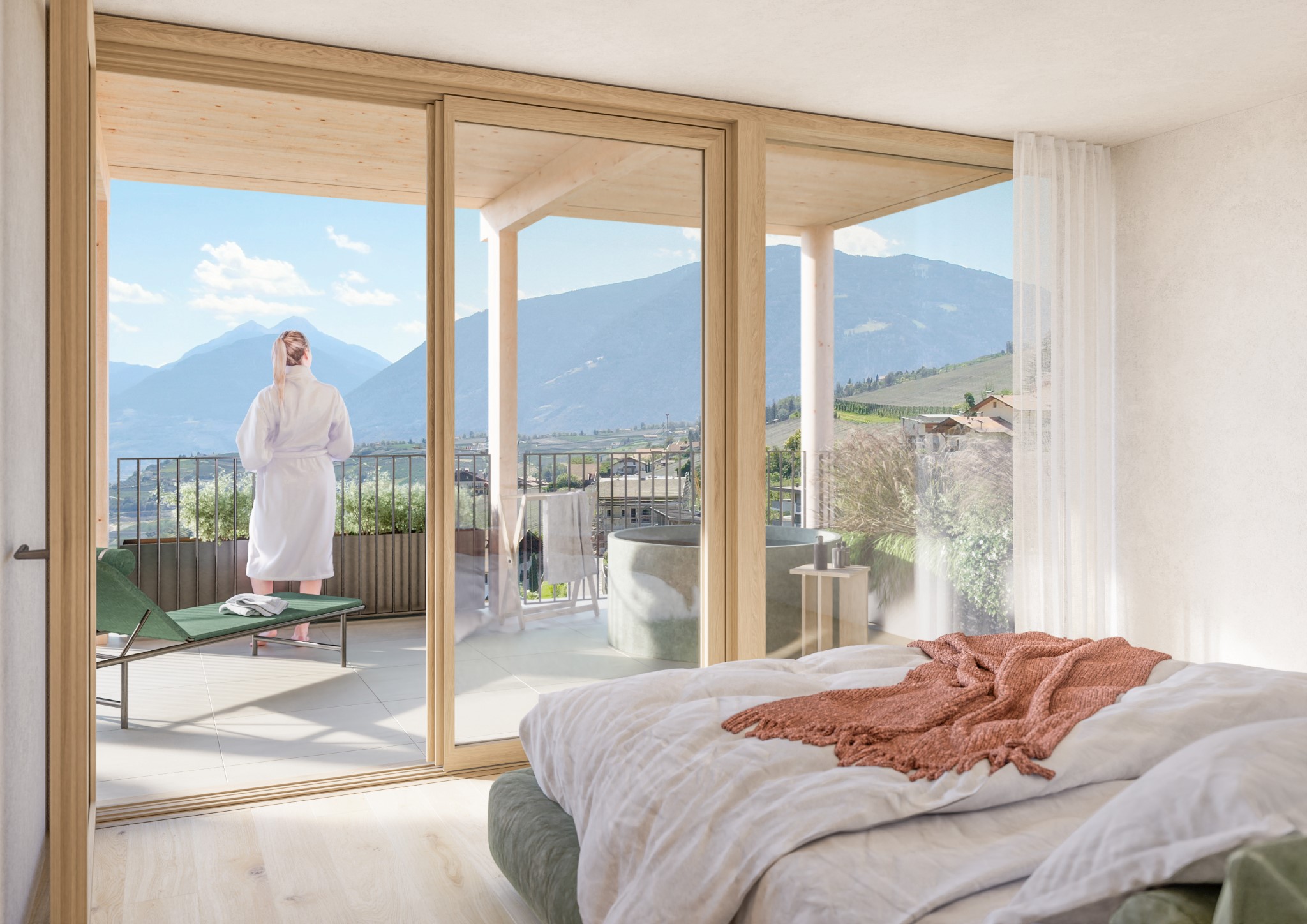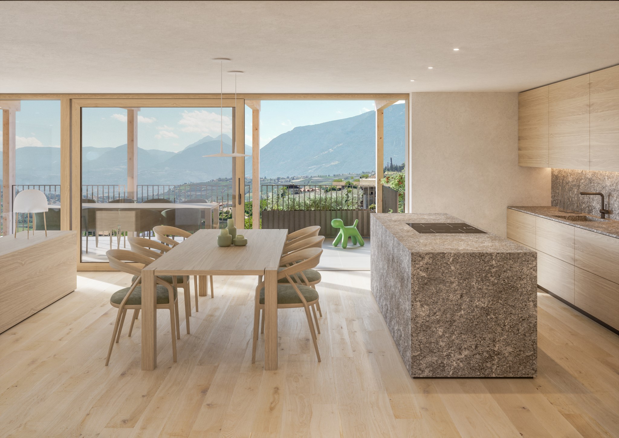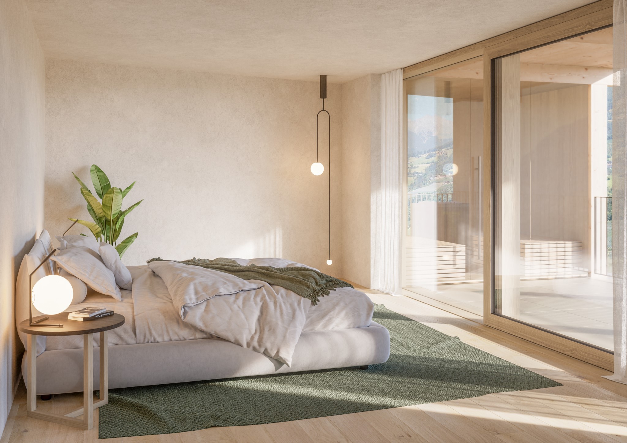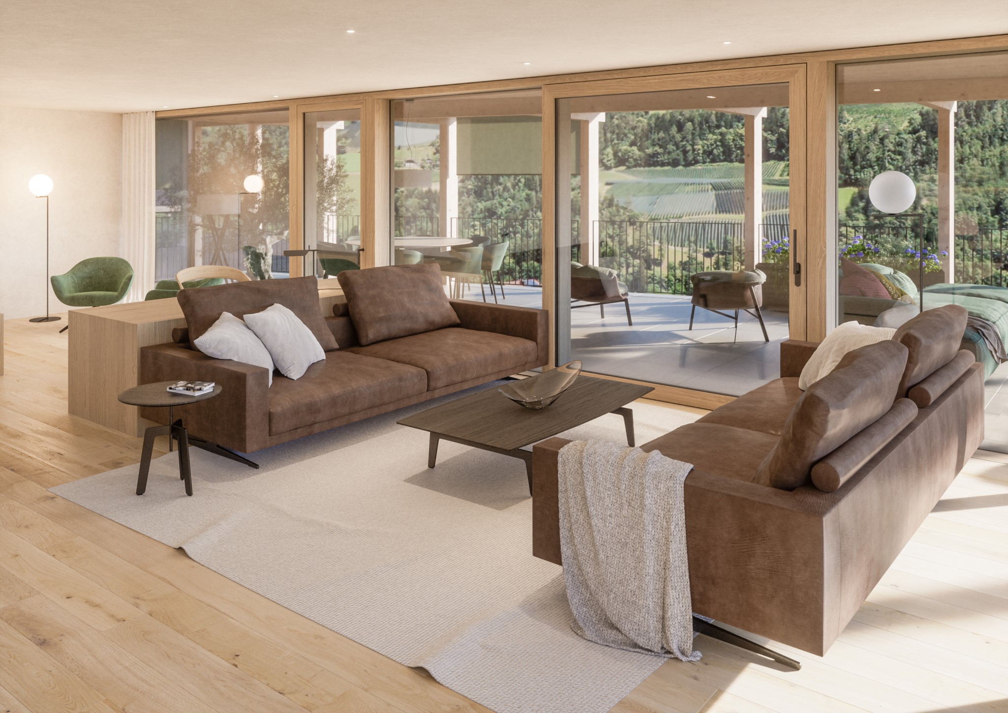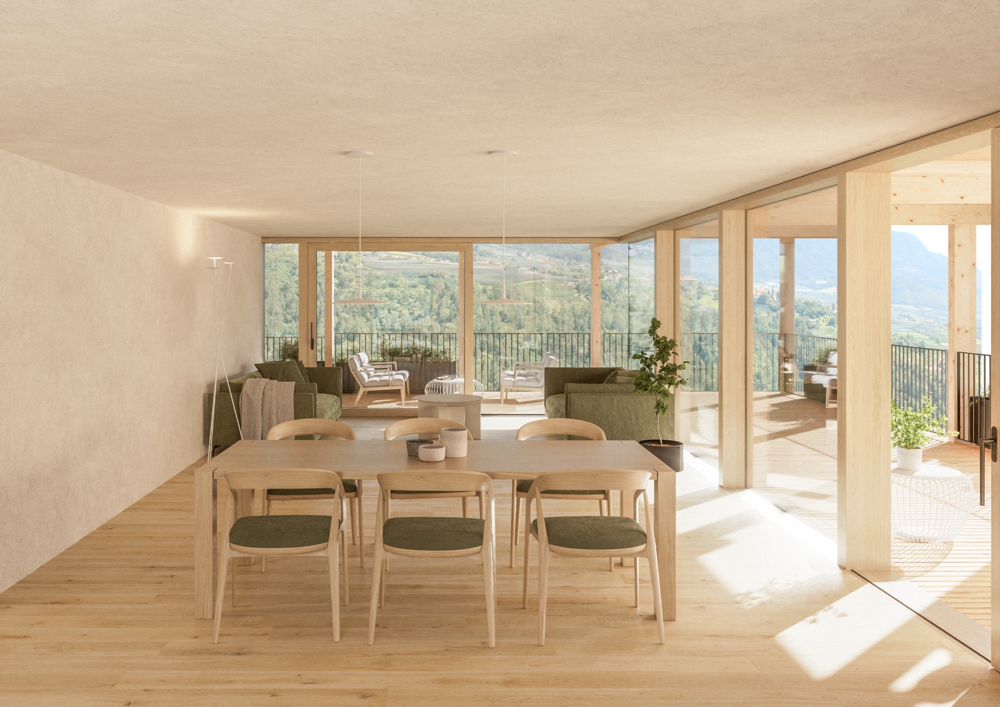 realizzazione dei rendering di progetto e di vendita per il progetto Kreuz Panorama Apartments vicino a Merano.